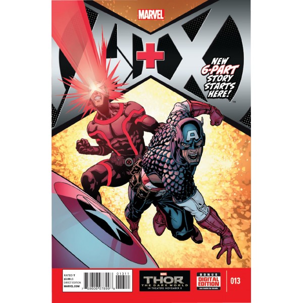 * Half of this issue kicks off a 6-part story by Gerry Duggan and David Yardin bringing A and X to a collision course with Captain America and Cyclops running in A+X #13-18!